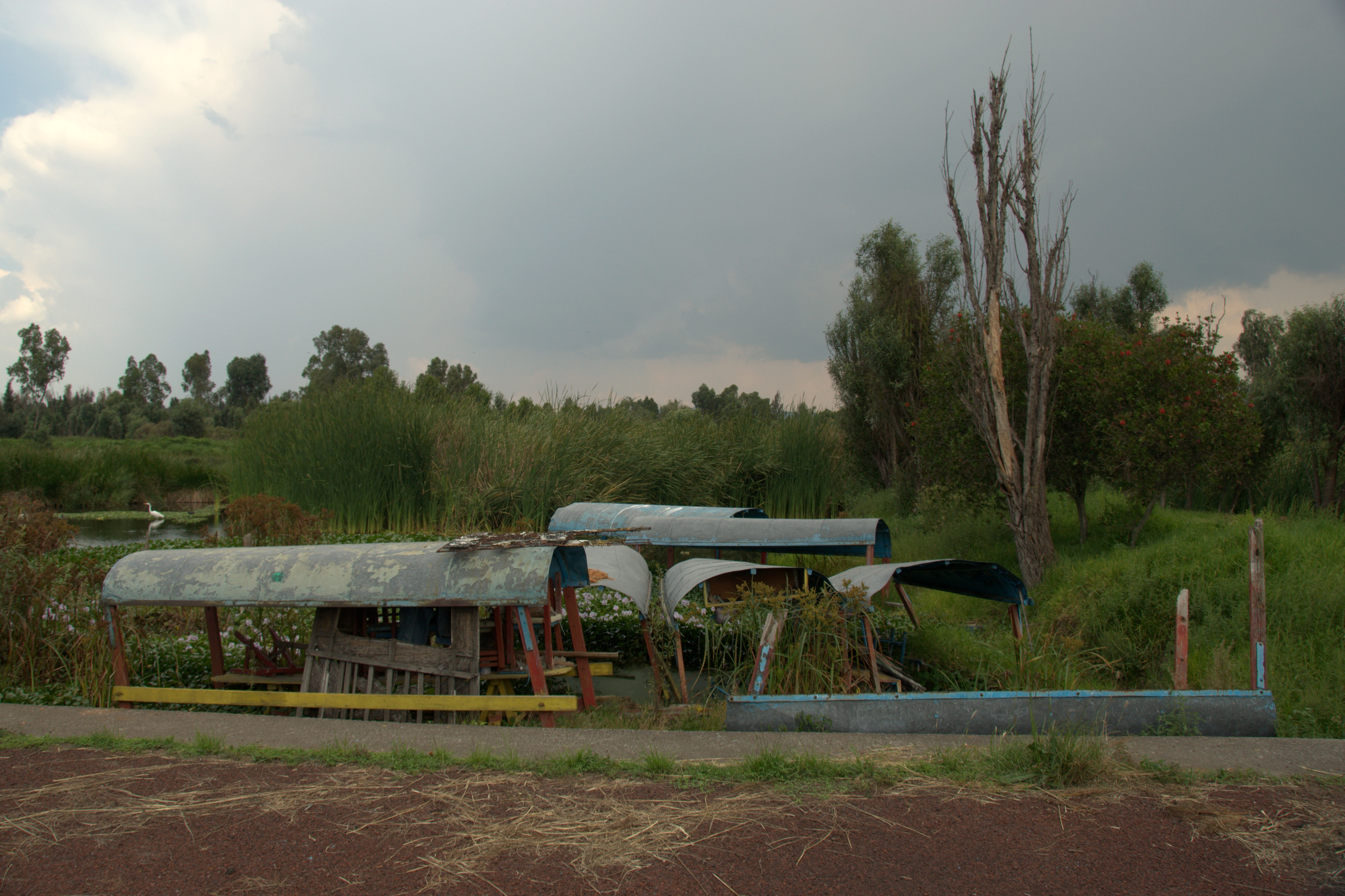 I took a different route to the exit, and eventually came upon a much larger lake with hundreds of birds and a few more trajineras. I finally found the park’s own gondola depot; methinks a ride here is not a booze cruise but instead focuses on bird watching, as this waterway appears to be cut off by Anillo Periférico, the “Ring Road” that circumnavigates Mexico City. More thunder clapped somewhere overhead and yet the late afternoon sky was as clear of clouds as it had been at any point that afternoon. I shall come back here soon, I promised myself, and I’ll drag my friends kicking and screaming if I have to. Well, hopefully just kicking, as any screaming will likely scare off those skittish egrets and possibly get me tazed in the huevos.