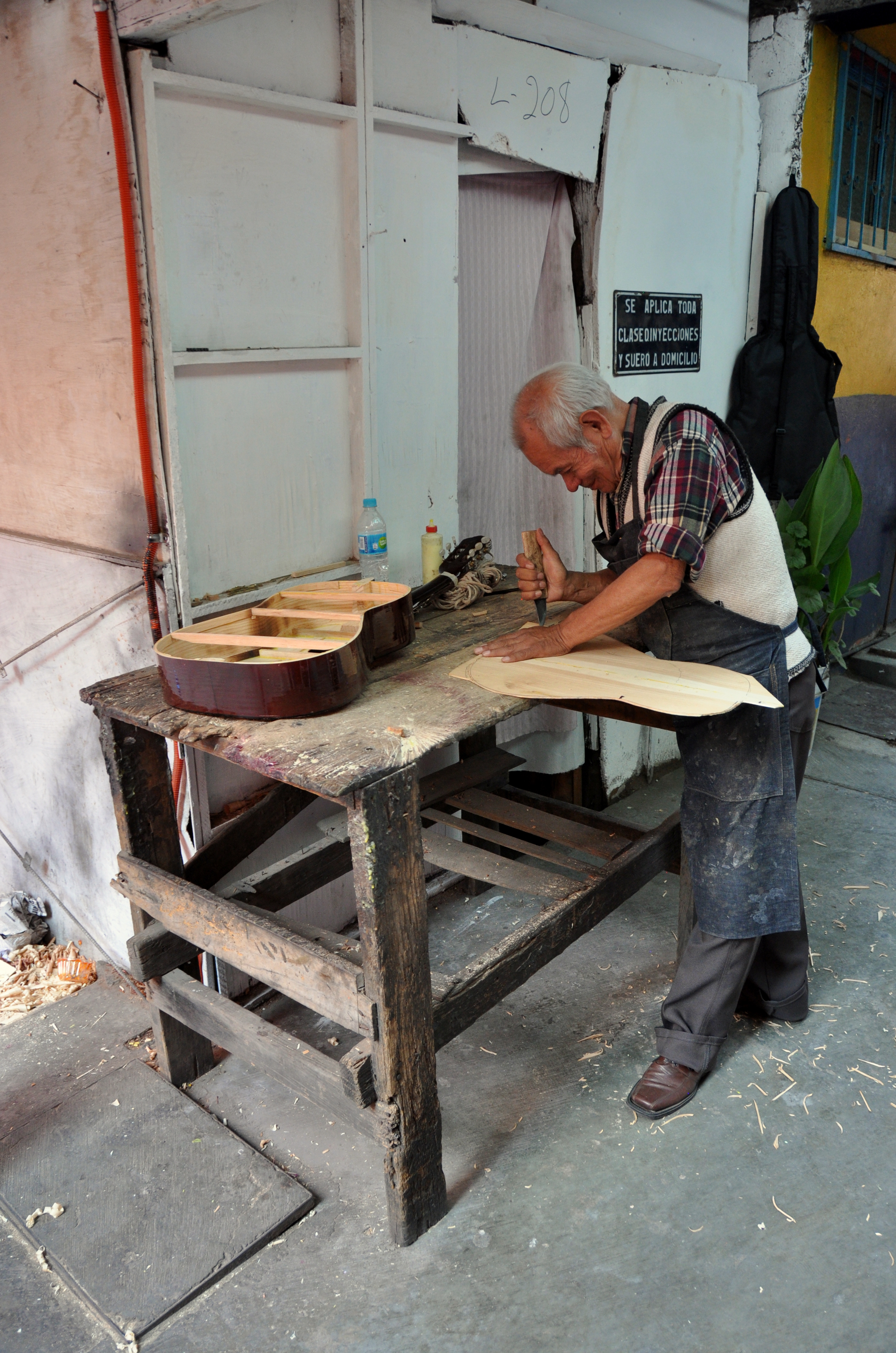 Below pic: Finally, something NOT made in China! Artisan hand-carving a guitar.