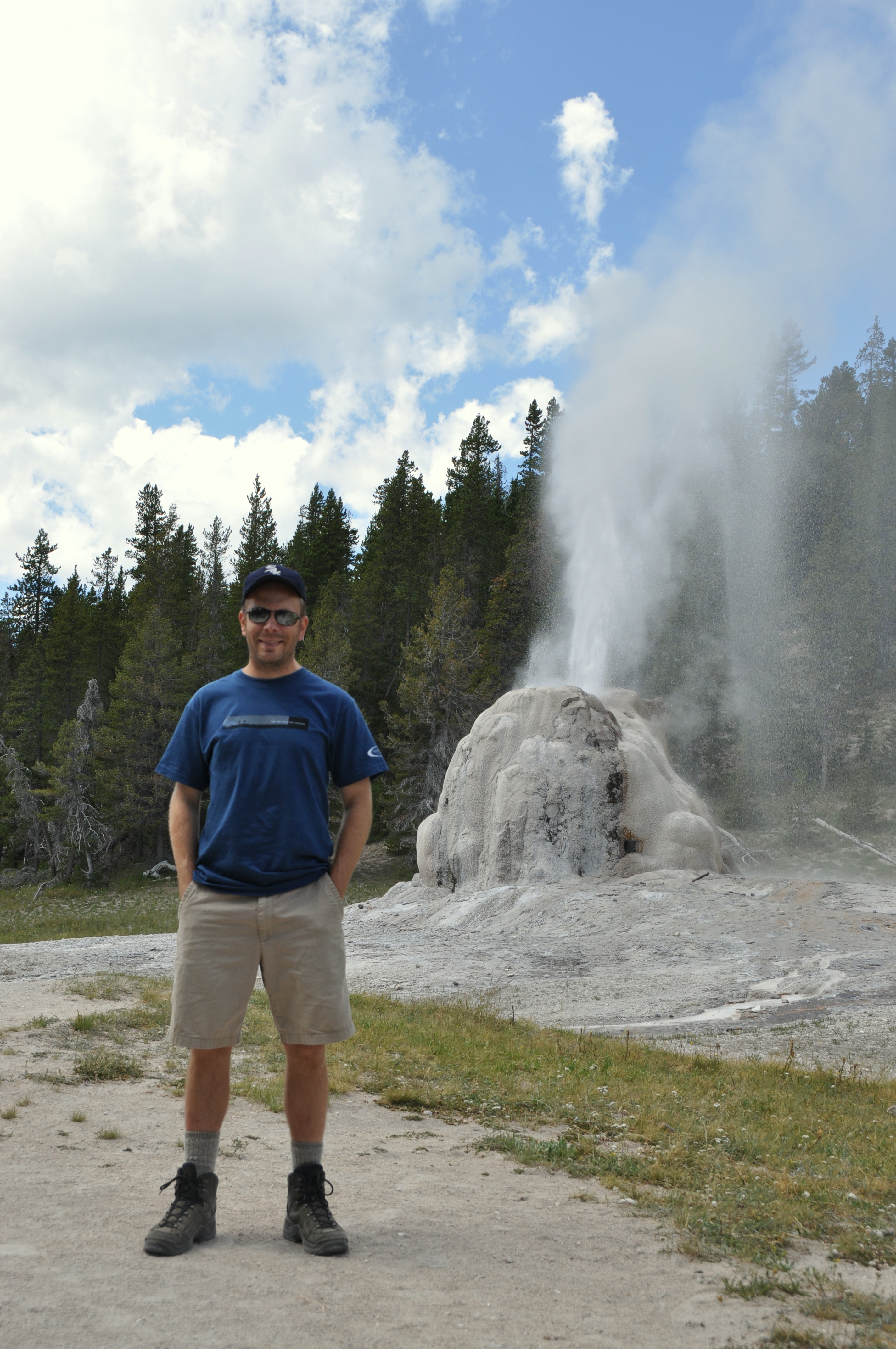 This one didn’t take long at all. Congratulations to Jules, aka “TheSnaggler,” who correctly guessed via Facebook that this photo was taken in Yellowstone National Park. In the pic, I’m posing in front of Lone Star Geyser, a solitary geyser several miles from the majority of the park’s geothermal hotspots. Lone Star Geyser erupts every three hours, and I just happened to arrive 20 minutes before its early-afternoon display. Just enough time to have a snack and set up my tripod for the perfect vantage point.