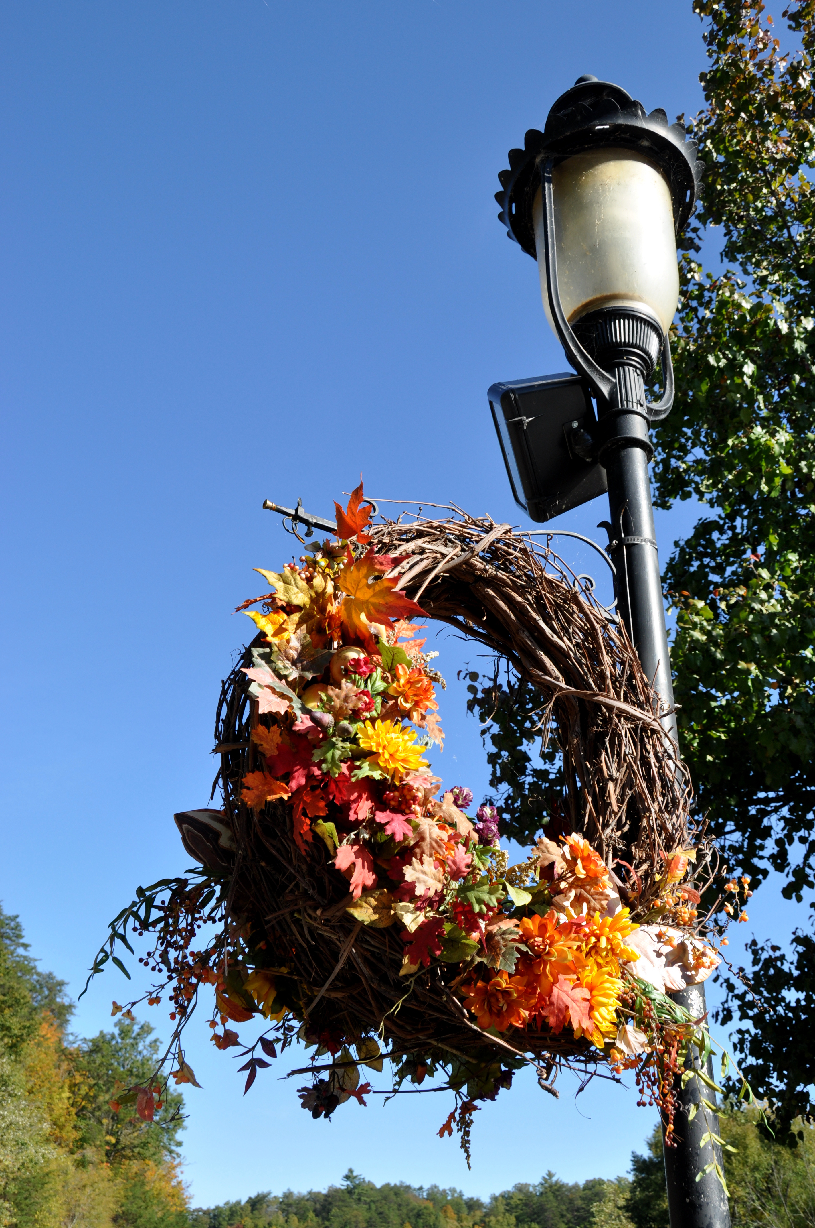 Above pic: Autumn wreath adorning a lamppost at Dollywood Amusement Park, Pigeon Forge.