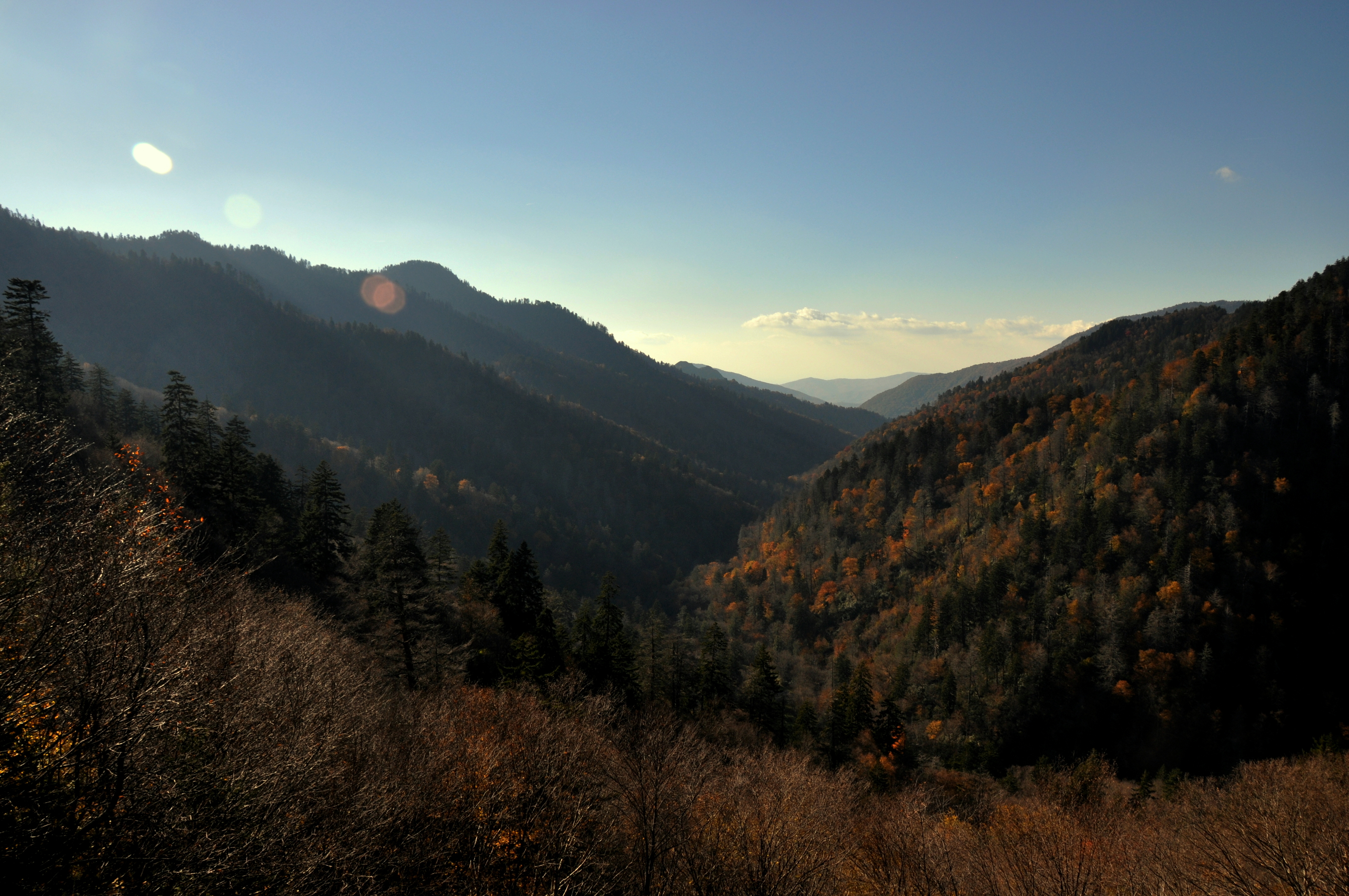 Above pic: 4-p.m. light over Newfound Gap, the highest point along the park’s main north-south road.