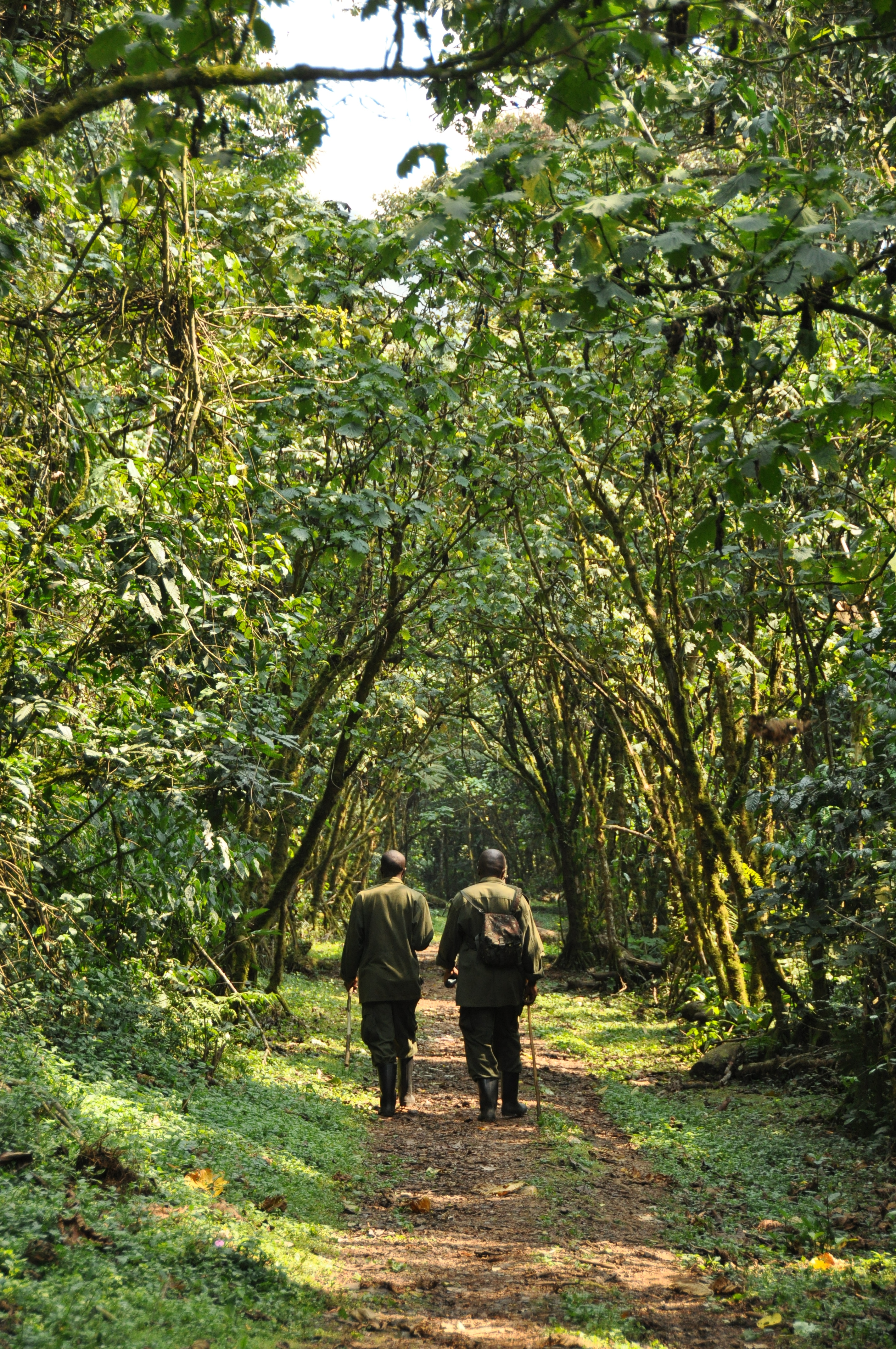 On our way back to the park gate, we noticed a nature trail near the entrance, which in turn was just 50 yards from our lodge. I asked if it was safe for us to check out the trail on our own. What I meant, of course, was this: How likely are gorillas going to charge us from the brush, seeing as we reek of sweat and are sans guide? “It’s safe,” one of the guides responded. “Gorillas never approach the village.”