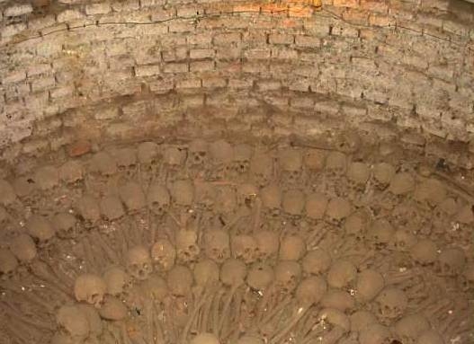 10. Monastery of St. Francis, Lima, Peru: The much-visited monastery and convento de San Francisco de Asís (Convent of St. Francis of Assisi) is one of the most interesting sites in the UNESCO-listed Centro Histórico of Lima. Not a lone building but a block-wide complex, the convent includes a library with over 25,000 texts. The granite-carved, baroque church is rich with religious art, including a “Last Supper” oil painting that shows Jesus and his 12 Apostles eating Peruvian dishes – guinea pig being one of them – rather than the traditional bread and fish portrayed in most interpretations. The spook factor – if the idea of holy men feasting on rodents isn’t scary enough – comes from the on-site catacombs. Discovered in 1943, the subterranean catacombs feature as many as 25,000 skulls and bones, some of them displayed in imaginative fashion. A cistern functions as an ossuary with skulls and femurs displayed in a circular pattern – a real creep-out. It turns out that the catacombs functioned as the Peruvian capital’s de facto burial ground until early in the 19th century, when a formal city cemetery finally opened. Have we not heard this story before?!