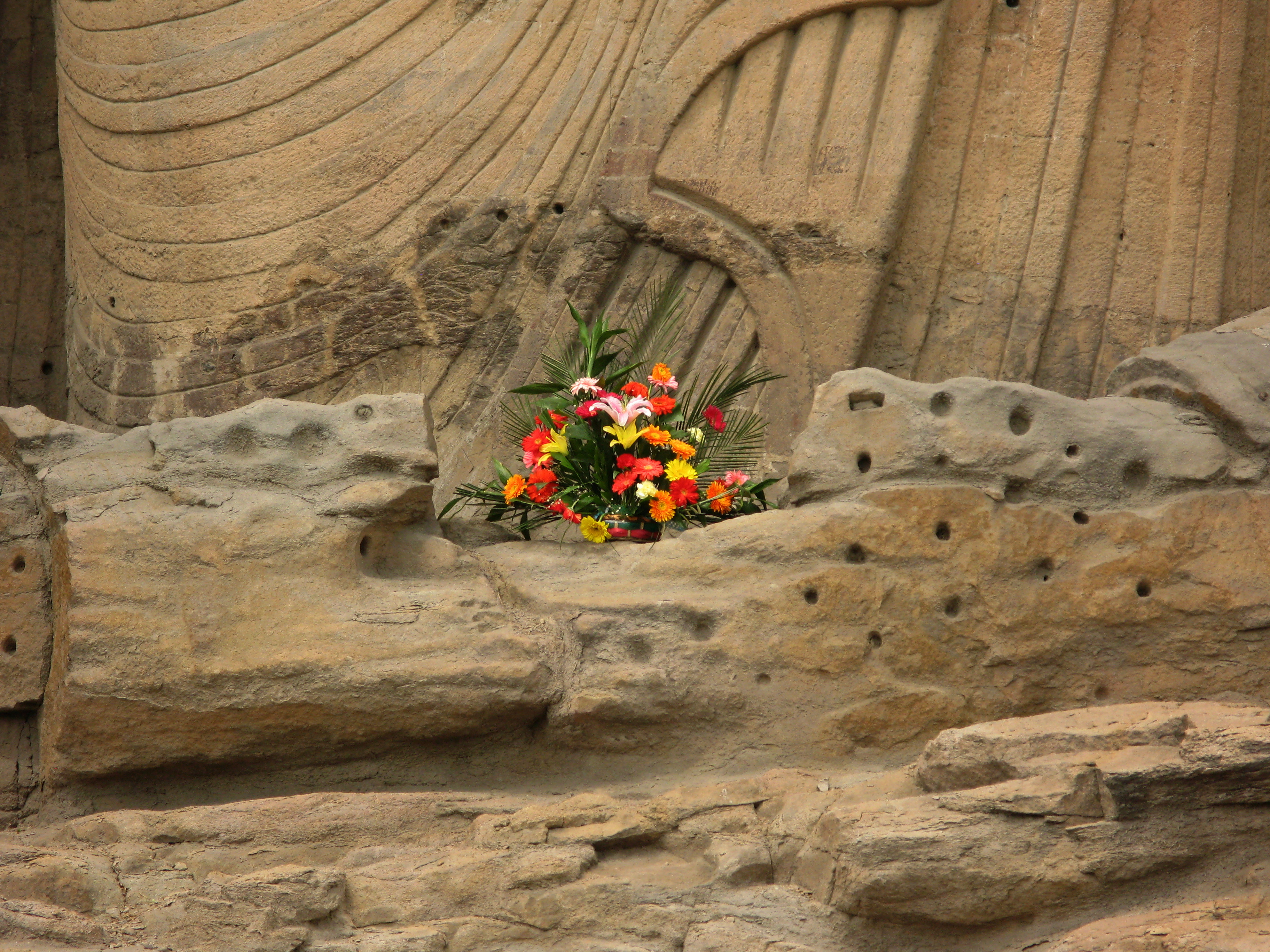 The above close-up reveals the detail and the aging. Buddha’s hands have basically eroded away.