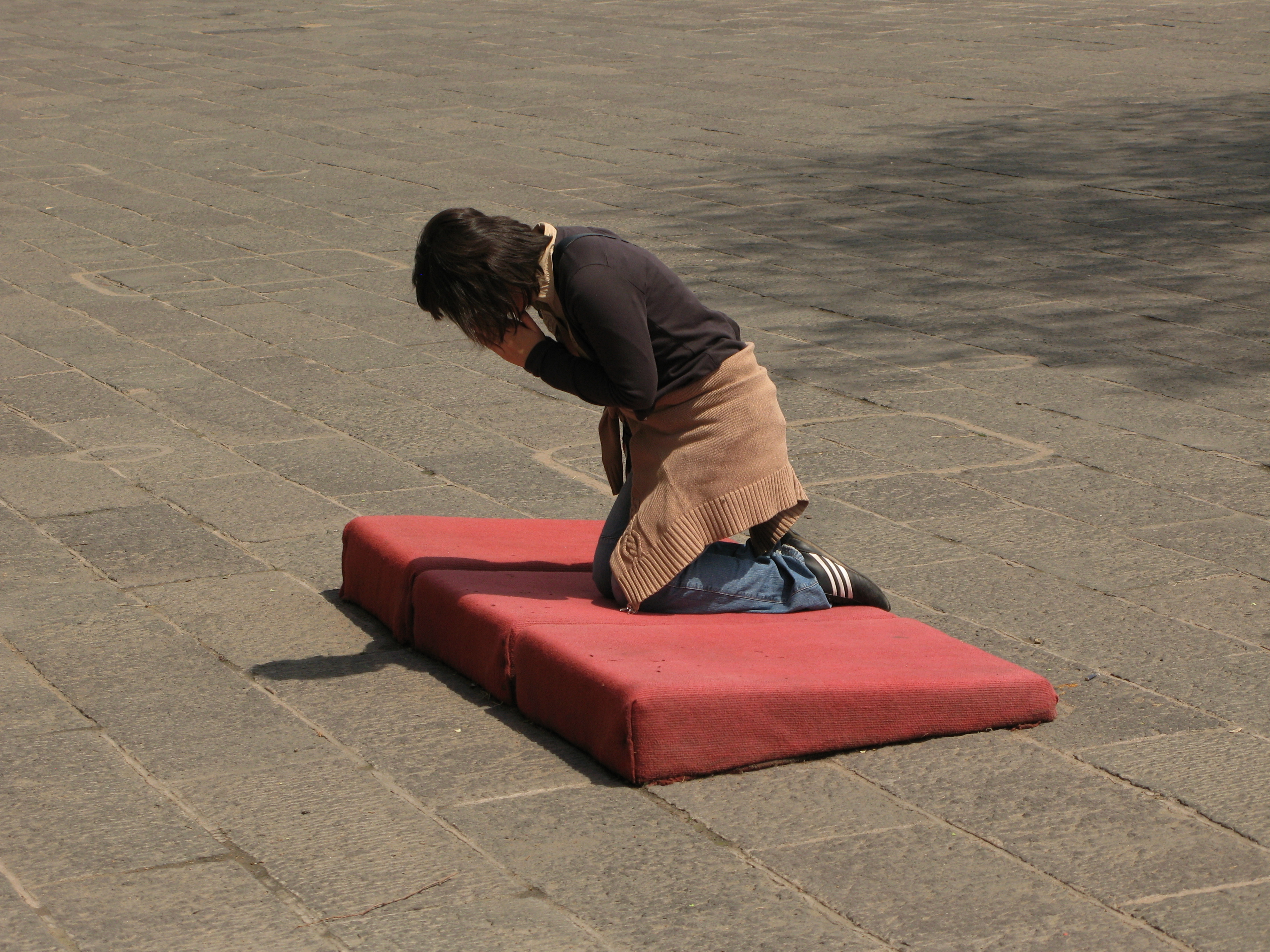 The largest Buddha sculpture, more than seven meters (22 feet) tall, has prayer mats facing it.