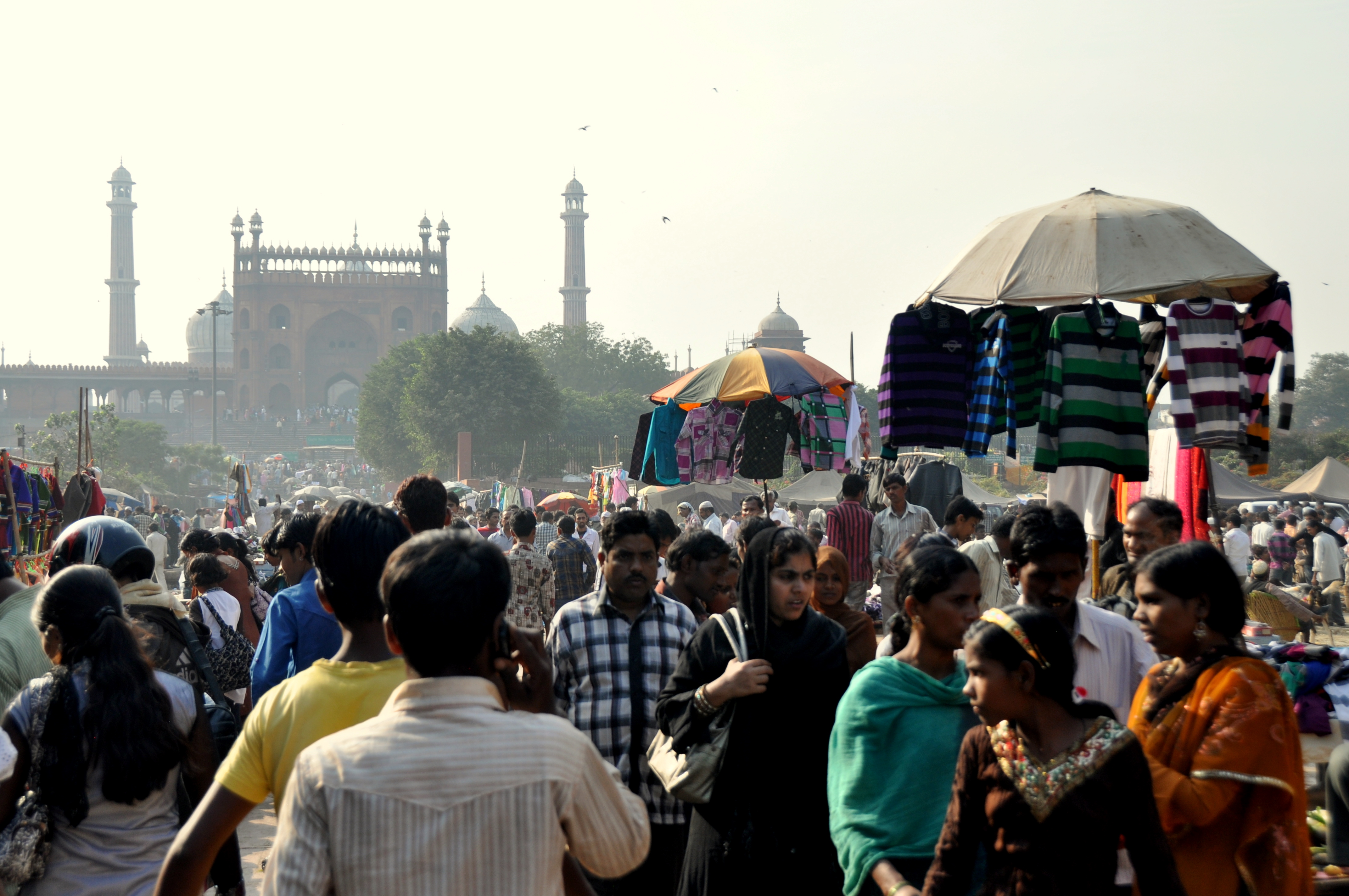 The dusty approach to Jama Masjid. In addition to the clothes and other bric-a-brac sold here, goats were freely traded.