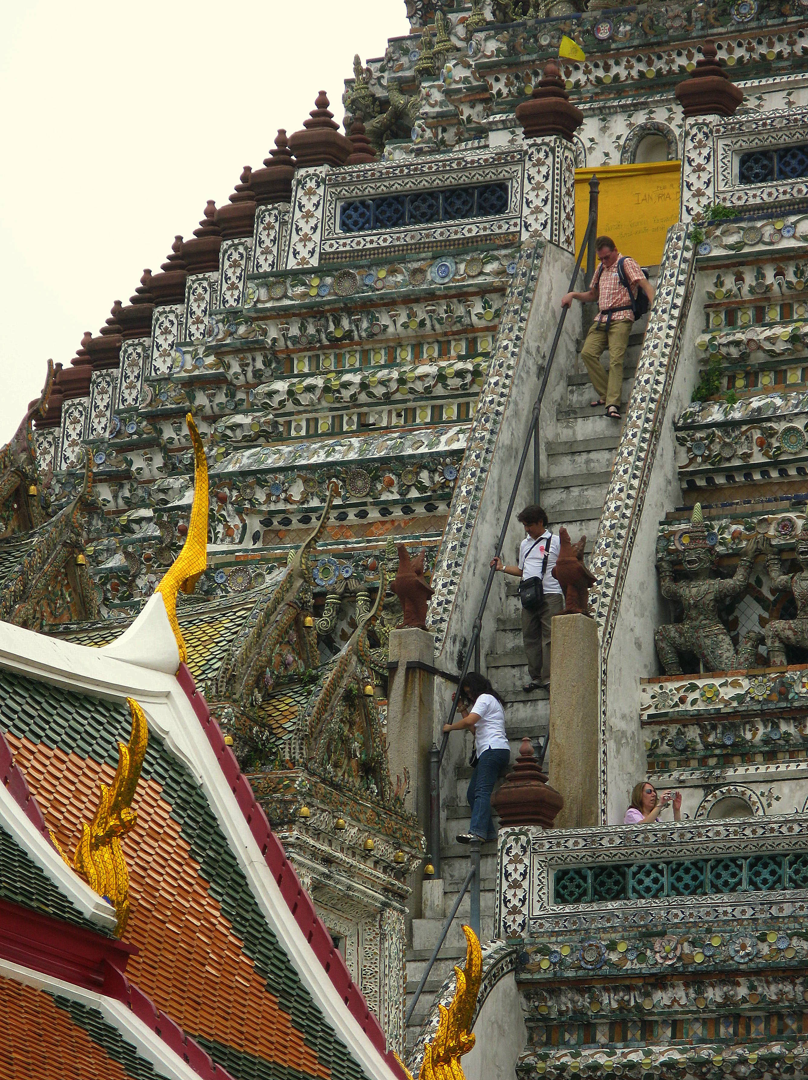 Wat Arun – the Temple of Dawn – is across the river from Wat Pho. The ornate stupa pictured above is the centerpiece. Stupas house Buddhist relics, typically the remains of deceased monks or nuns.