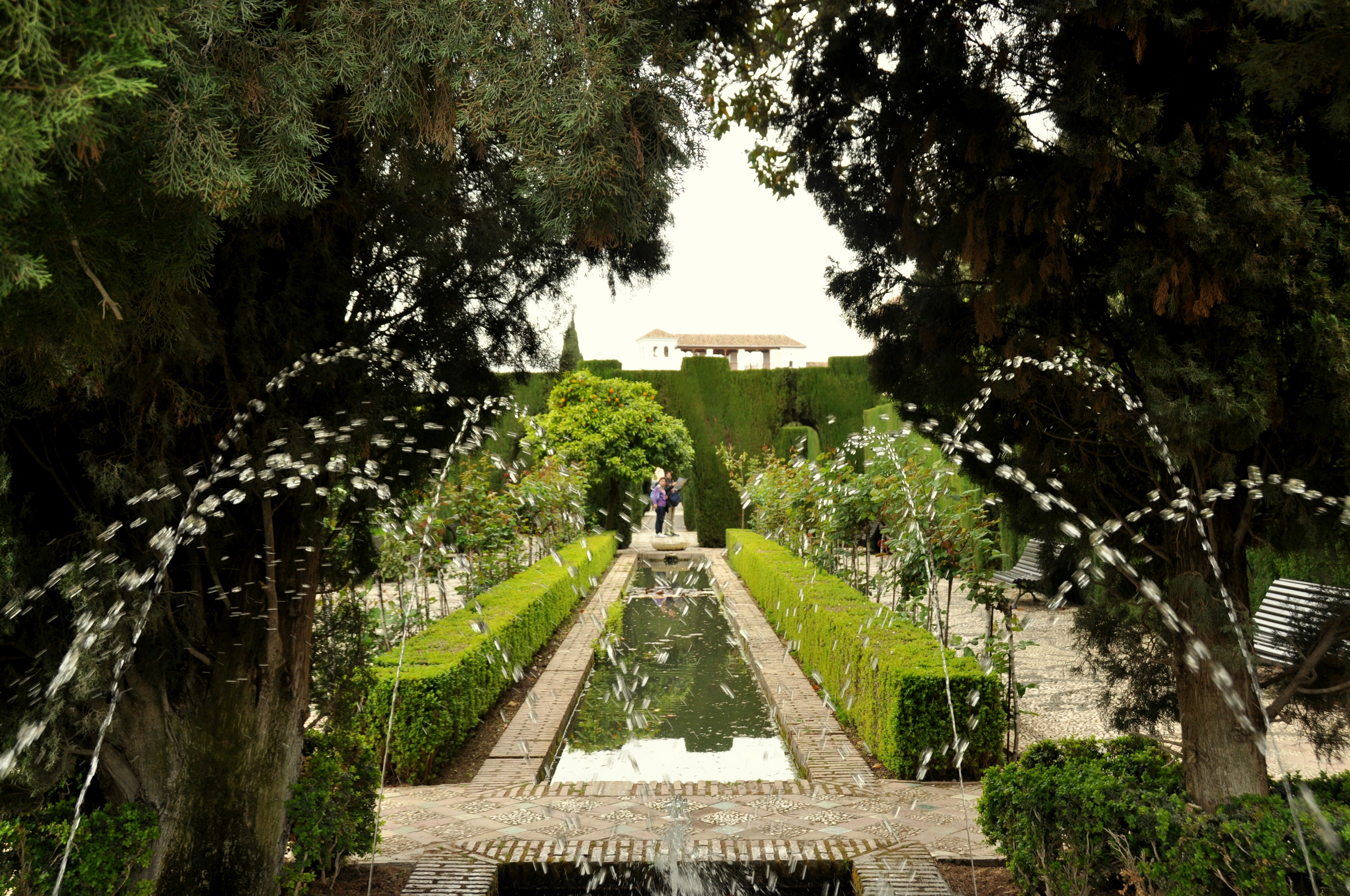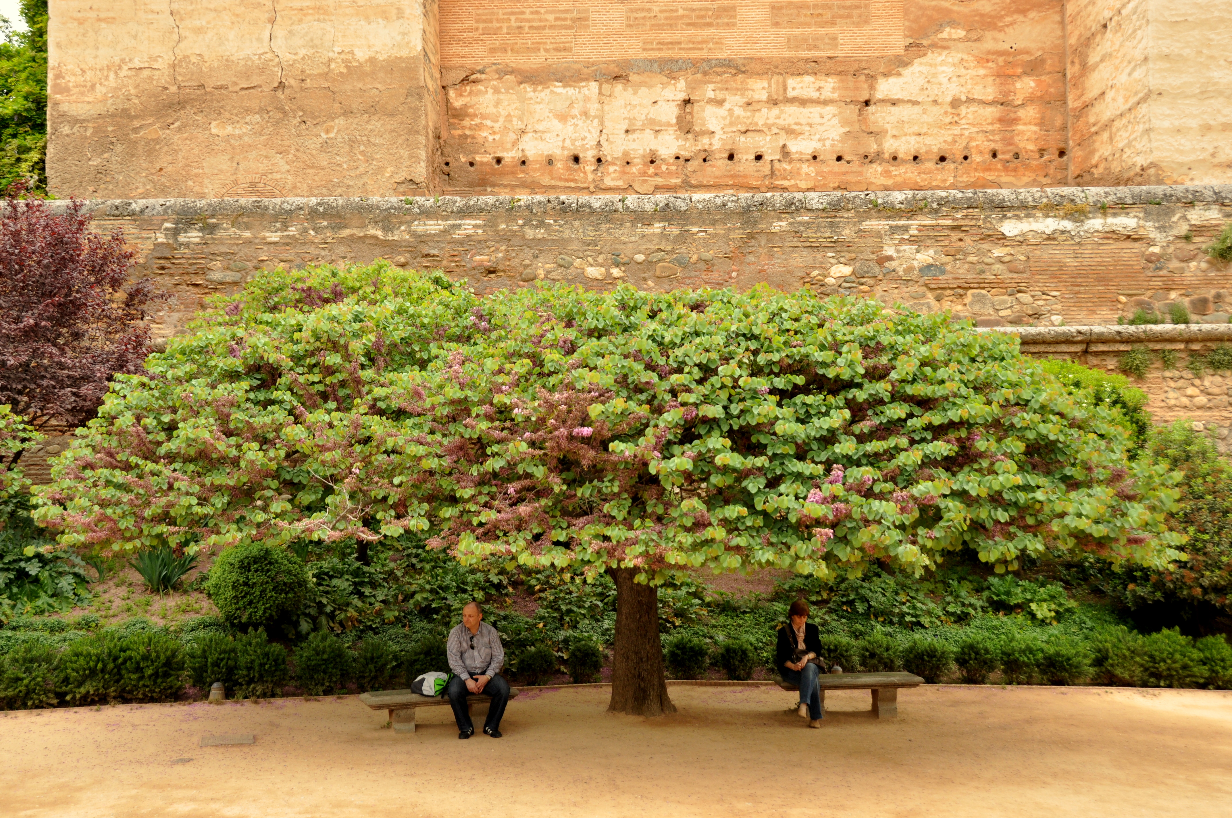 It was overcast, with intermittent misty rain, when this photo of a shade-giving tree in the Alcazaba’s courtyard was taken. These tourists are either taking a respite from the rain or simply resting their feet; a thorough site visit takes several hours and will leave even the heartiest visitor knackered.