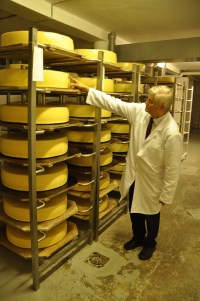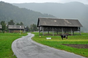 I visited Bled and Bohinj in late September, and the weather change from one place to the next clearly marked the passage from summer to fall. Villages near Bohinj celebrate this change in seasons with a festival that was unfortunately canceled because of the rain. One thing that was running, however, was a tour of a local cheese factory.