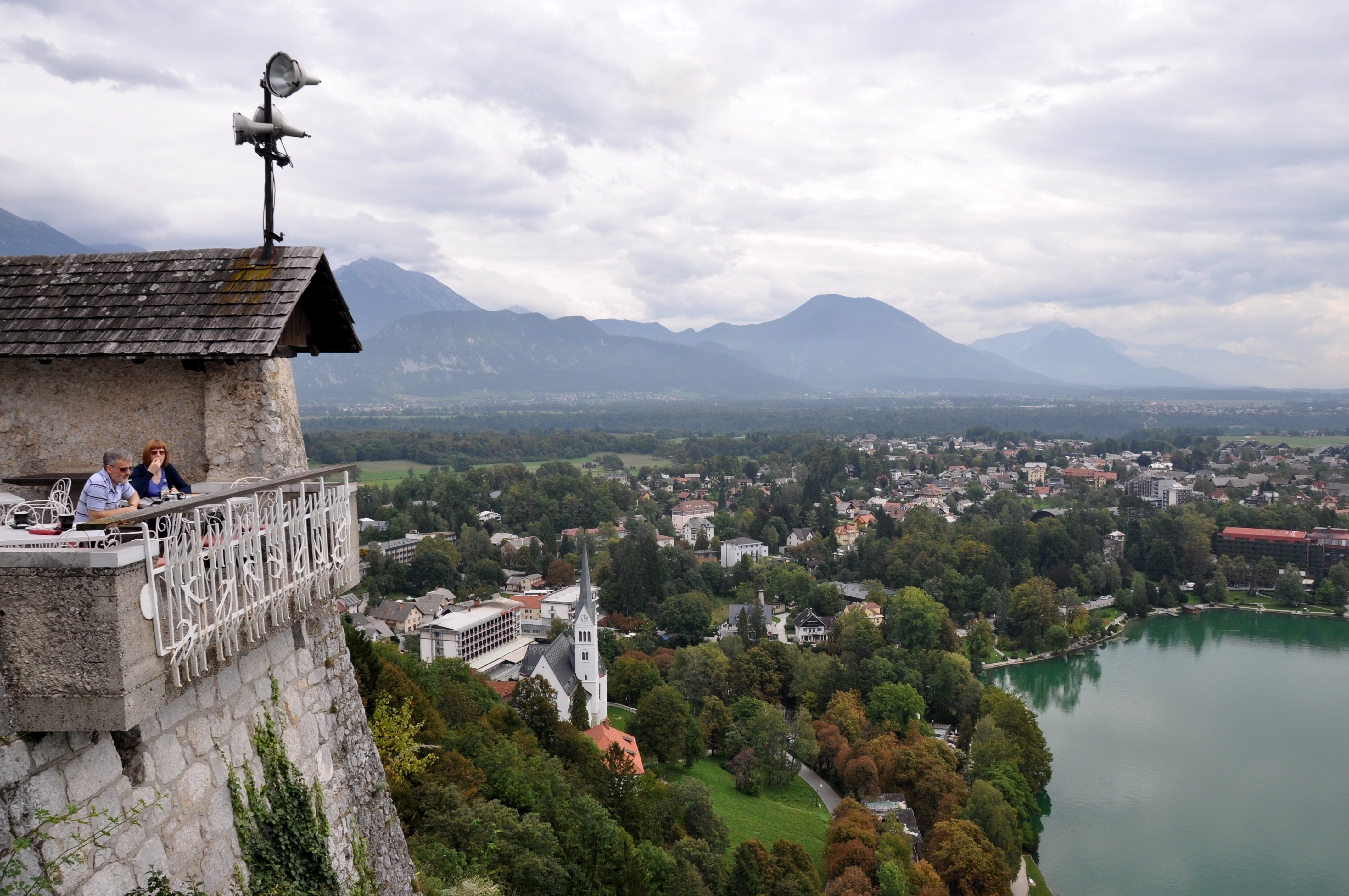 Blejski Grad – Bled Castle – as seen from below. It is worth the trek to the castle itself, which offers panoramic views and the requisite galleries.