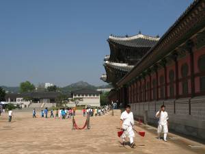 South of the Han River, the entrance to Seoul’s largest temple complex, Gyeongbokgung Palace (Northern Palace), was covered from public view during renovations at the time of my 2007 visit…