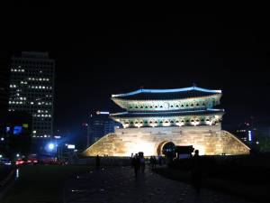 Namdaemun Gate, overexposed in this photo but one of the Joseon dynasty landmarks, sits on an island of green near Seoul Plaza and Seoul Station. According to theseoulguide.com, Namdaemun means “Gate of Exalted Ceremonies.”