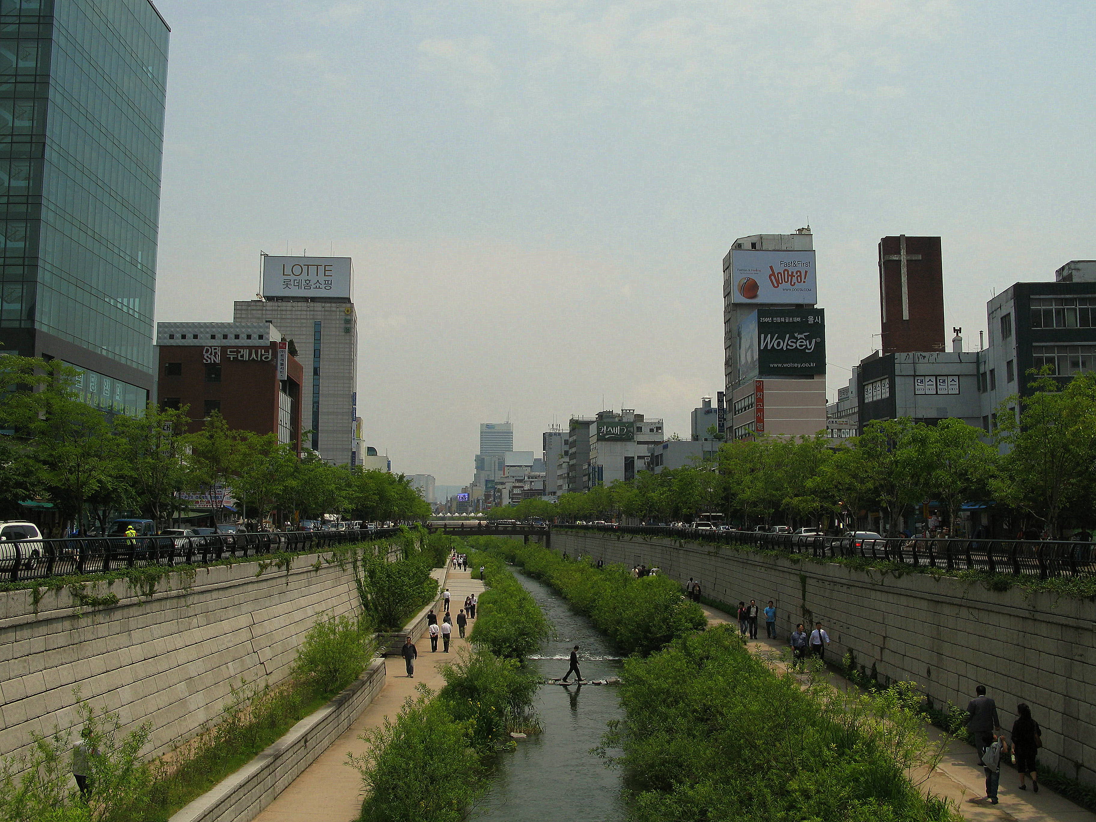 Cheongye Stream, a once-polluted eyesore that was spruced up in the early 2000’s, now serves as a sort of pedestrian shortcut through Seoul’s Central Business District.