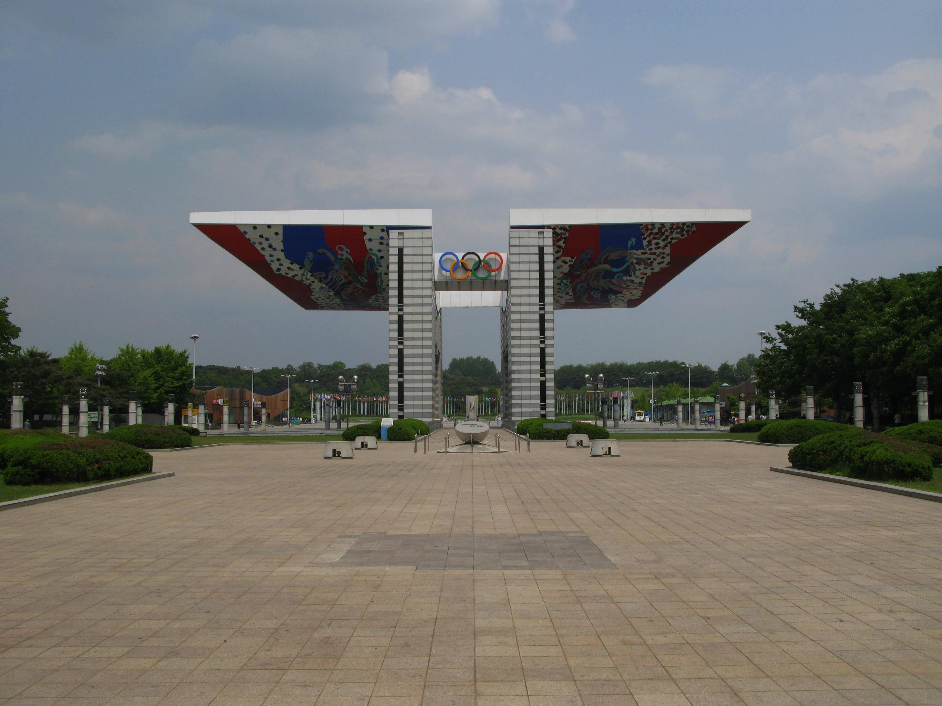 It hasn’t been since 1988 that the Korean Peninsula played host to the Olympics – the Games of the XXIV Olympiad, set in Seoul during not winter but summer. Olympic Park, in the north of the city, is a massive green lung, containing numerous athletic venues, sculptures, and this stunning entryway, World Peace Gate, beneath which burns the eternal flame.