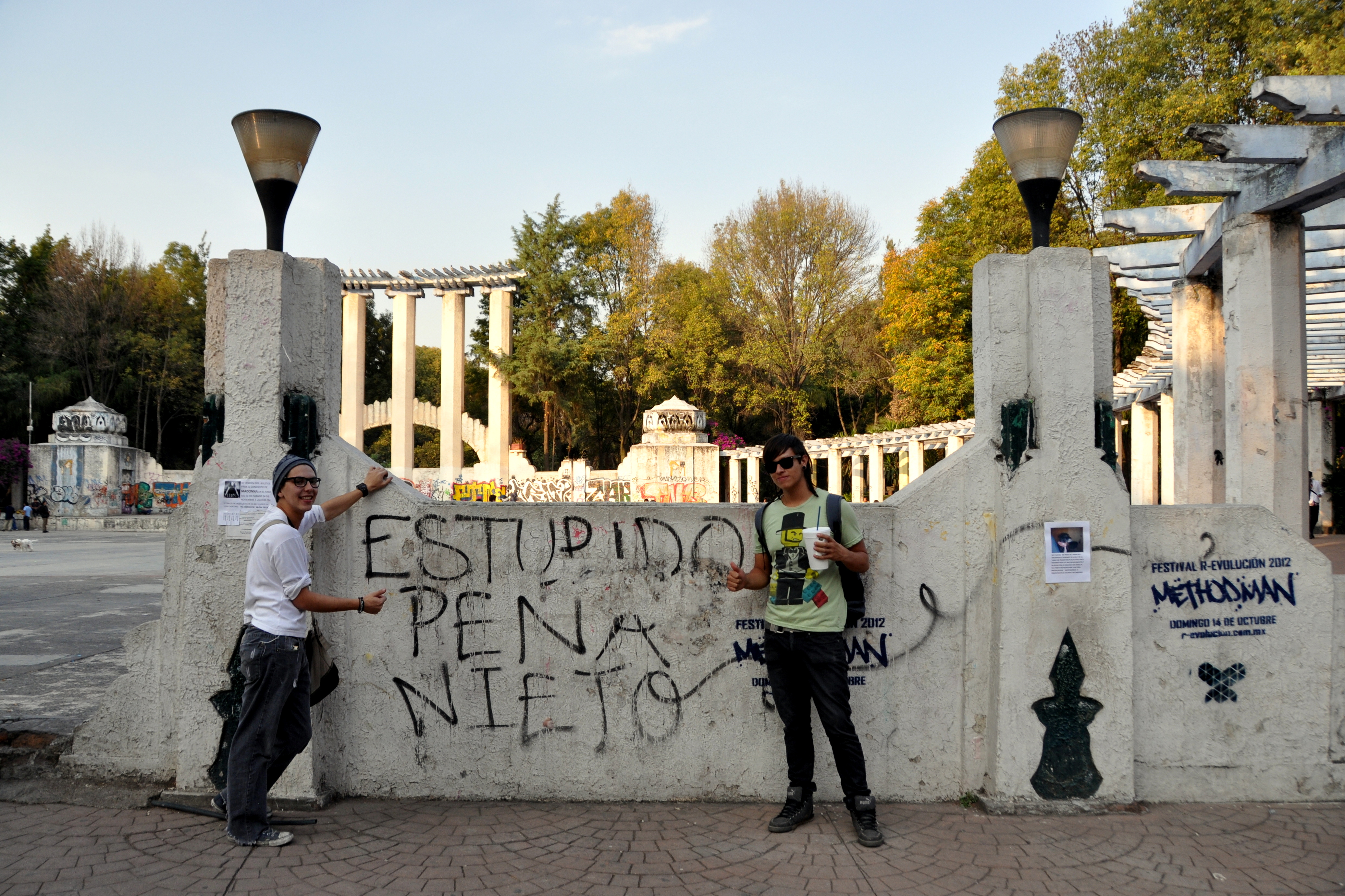 Proud taggers in Condesa’s Parque México, lamenting their country’s incompetent president, Enrique Peña Nieto, whose party was voted out of office earlier this month.