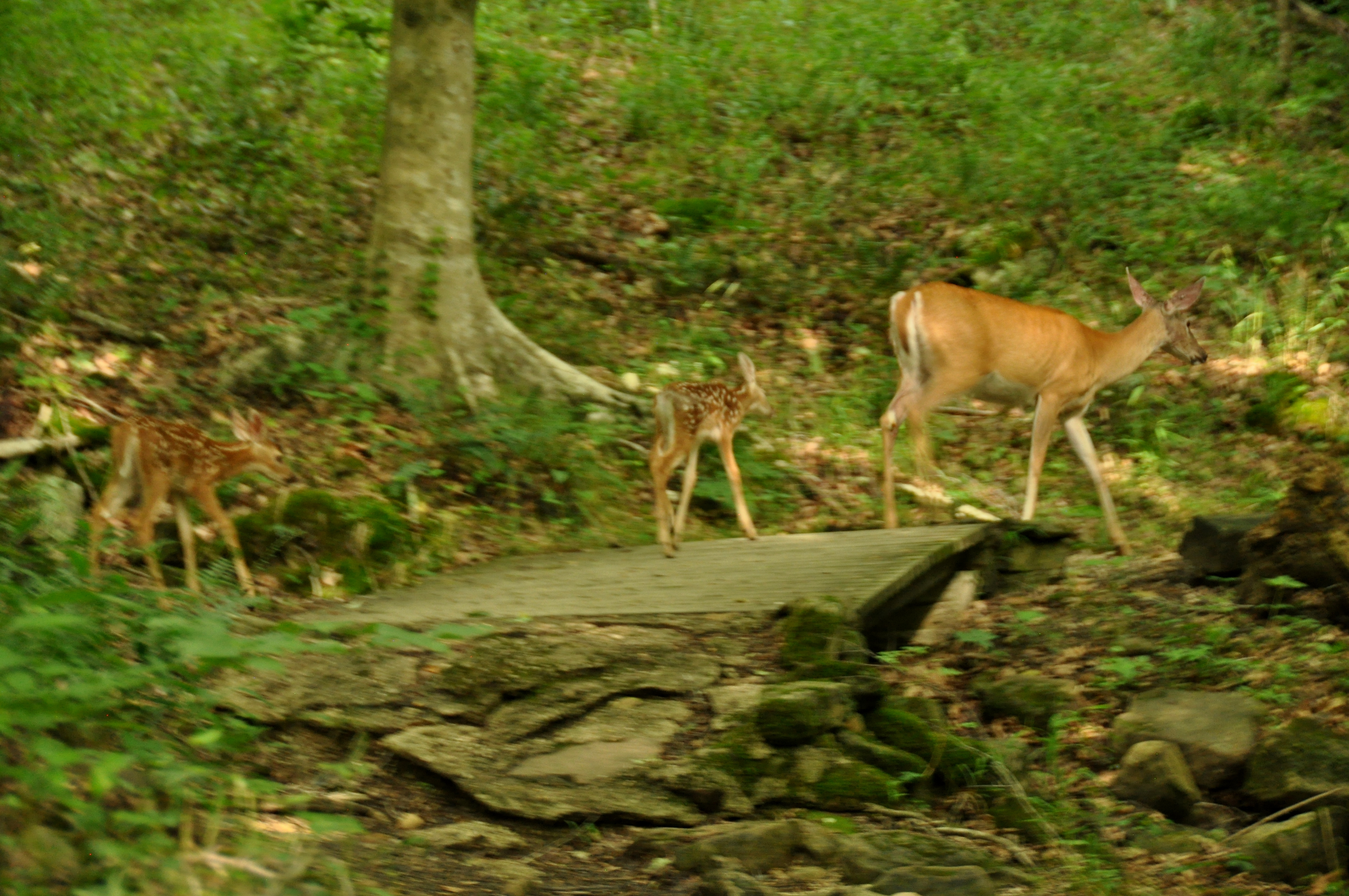 A trail close to here passes above Dixon Cave, which is not connected to Mammoth Cave itself. Access to Dixon Cave was fenced off as it is now a sanctuary for bats. I followed the trail down to the river’s edge itself (muddy!) and hiked closely behind a family of deer that appeared to be taking the same route. They didn’t seem too bothered by my presence, though I did keep my distance, my camera’s zoom lens overcompensating. This encounter was the highlight of my day, and perhaps of the entire weekend.